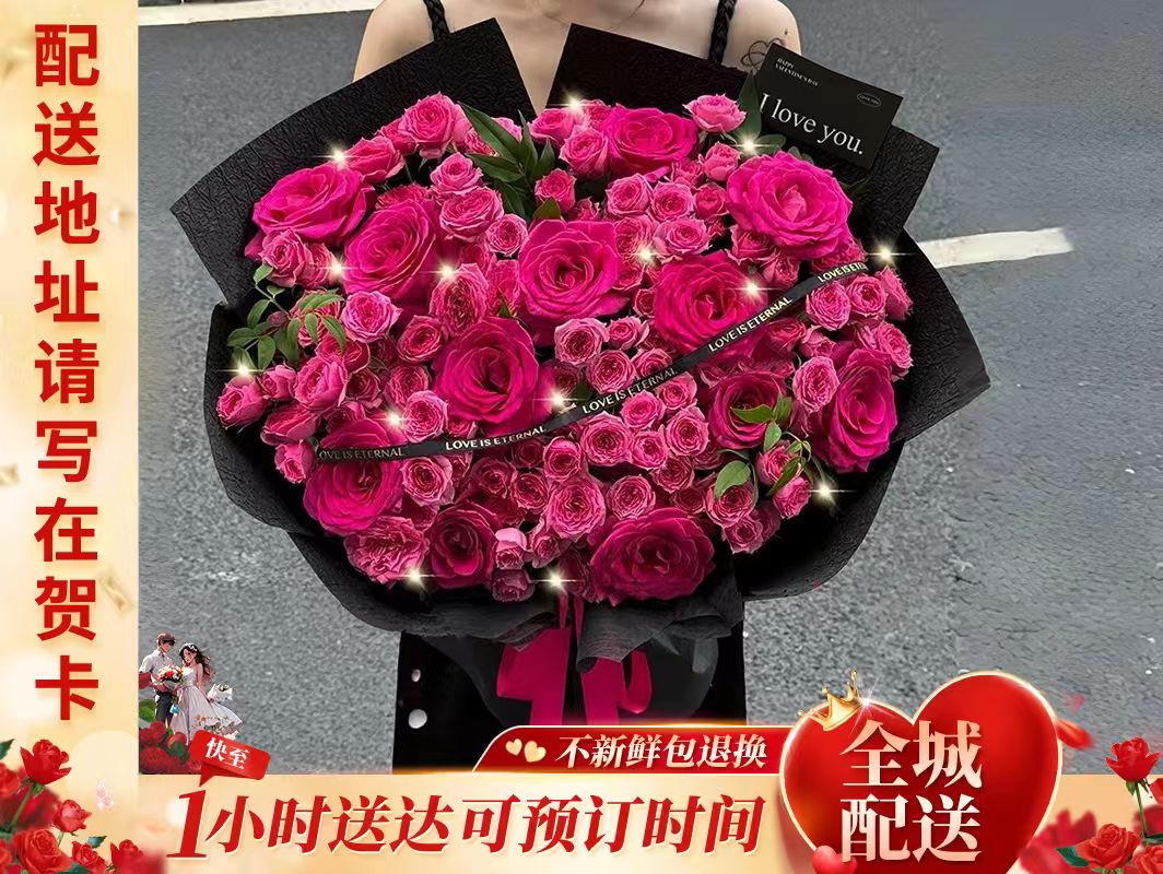 弗洛伊德玫红色玫瑰鲜花花束 love you