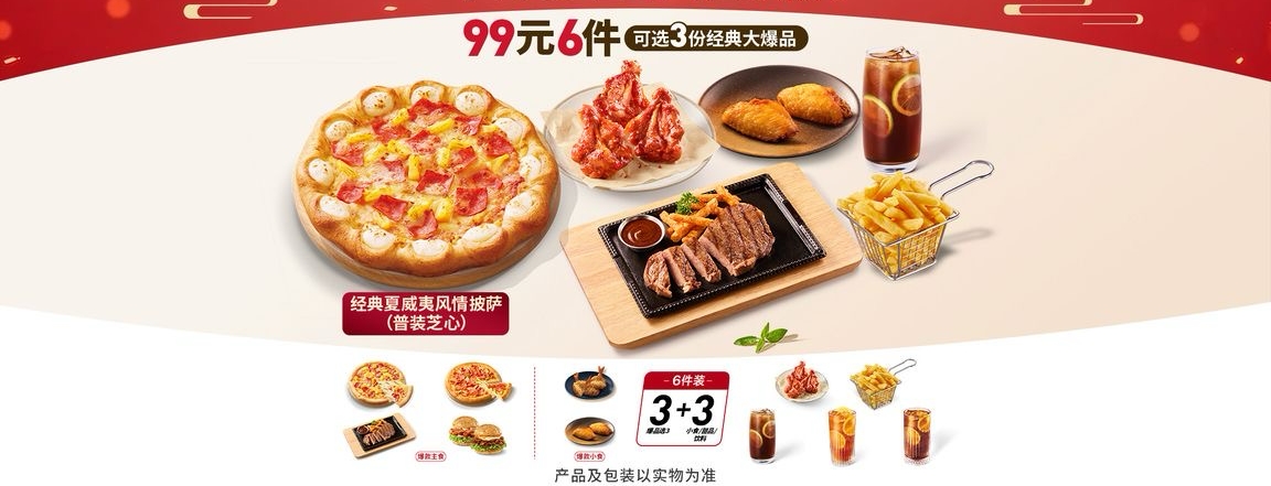 [含一个大披萨|低至3.8折)74元6件披萨小食套餐
